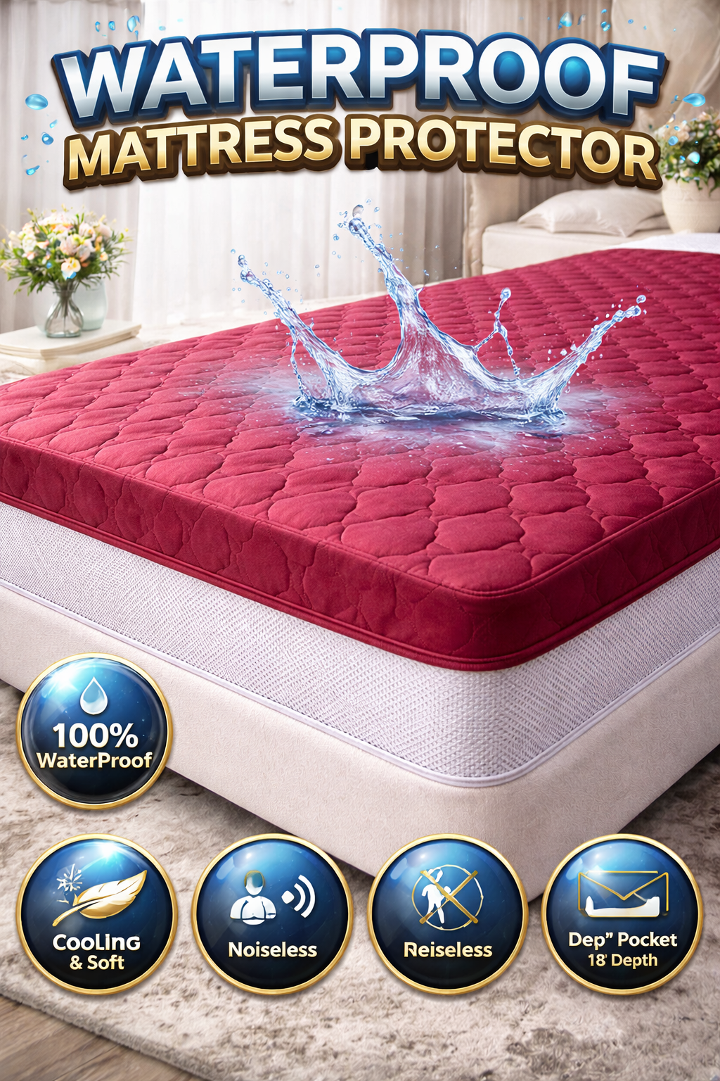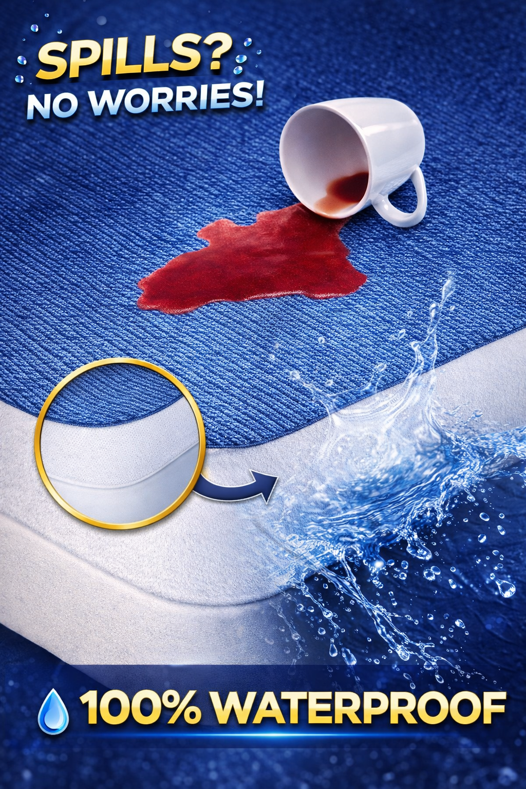 ✅ 100% Waterproof Protection – Liquid stays on the surface and does not pass through to the mattress.